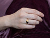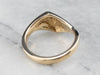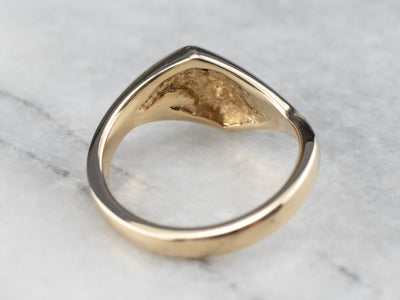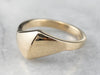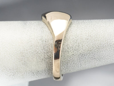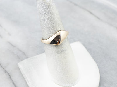 This gold band makes a beautifully minimalist statement on the hand! The asymmetrical tapered design comes to a soft peak, allowing the light to play off the polished surface. This is a great everyday ring!