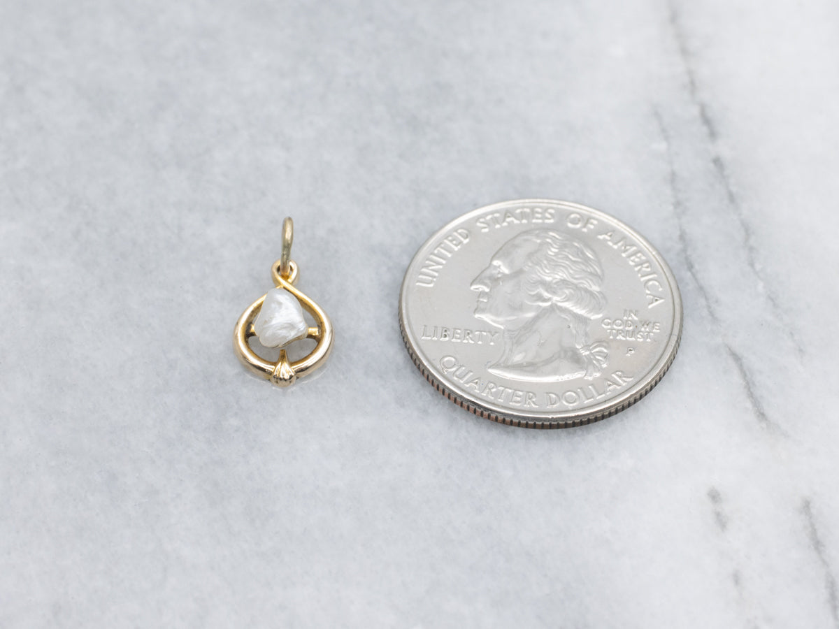 Metal: 10K Yellow Gold Gem: Pearl Gem Measurements: 4.4 x 5.1 mm, Natural Form Measurements: 9 x 17 mm, with bail Marks: "10K" Stamped on the reverse