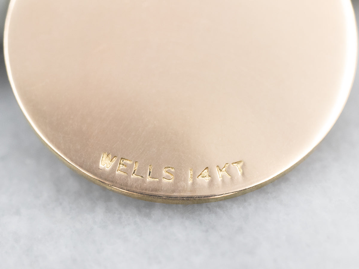 Metal: 14K Yellow Gold Materials: Enamel Measurements: 20.9 x 29.8 mm, with bail Marks: “WELLS 14K” Stamped on the reverse