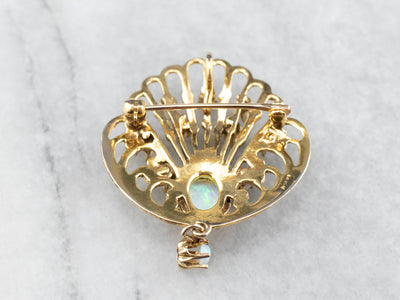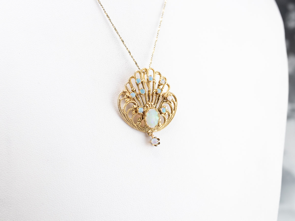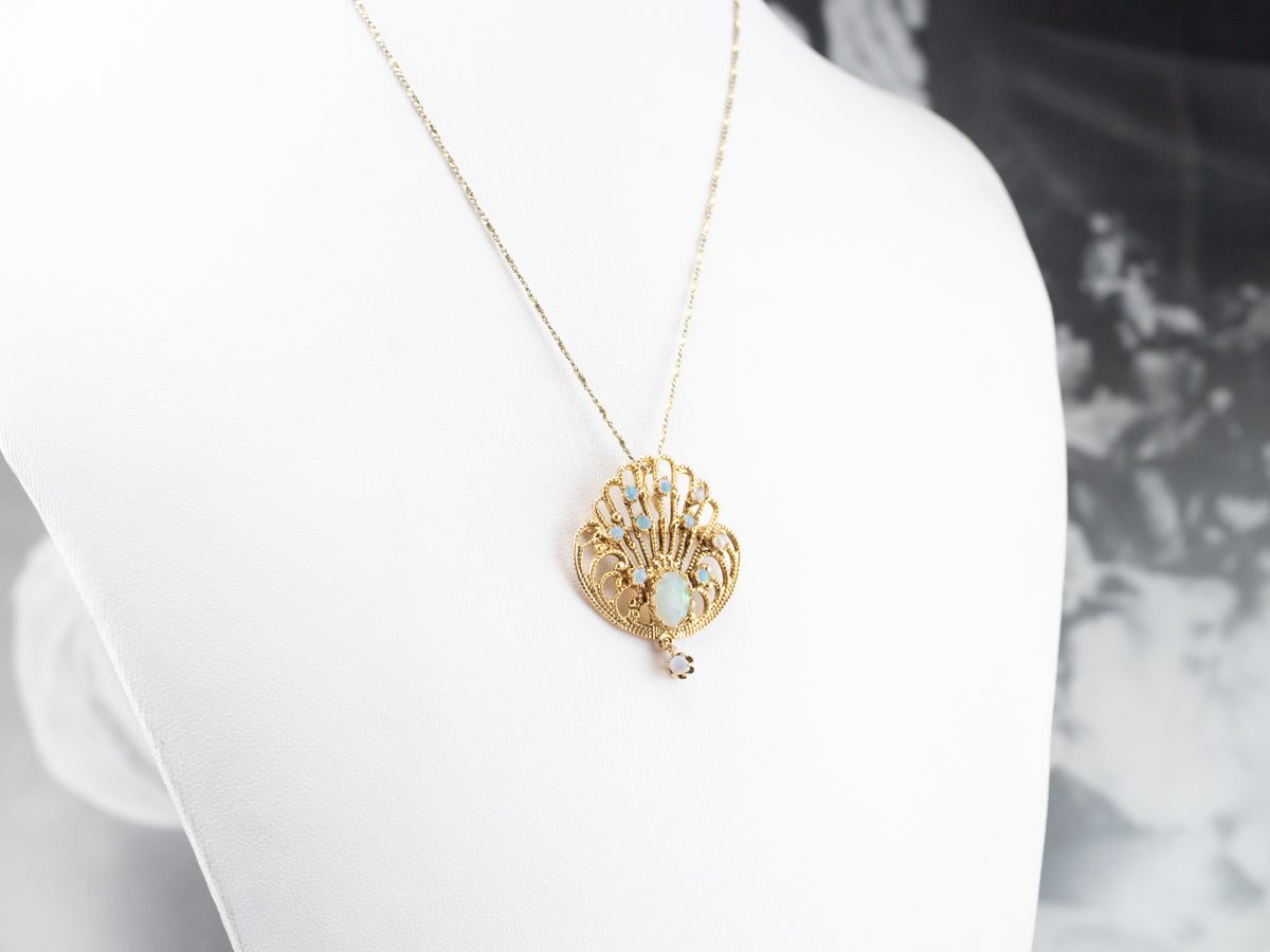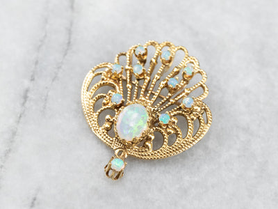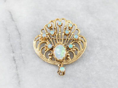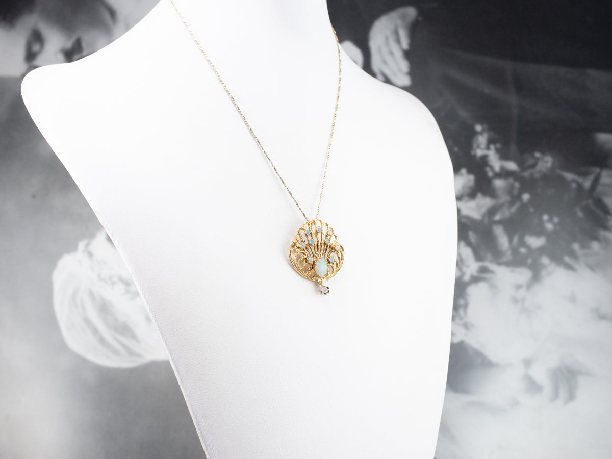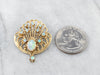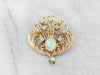 Ornate Opal Gold Filigree Brooch Pendant