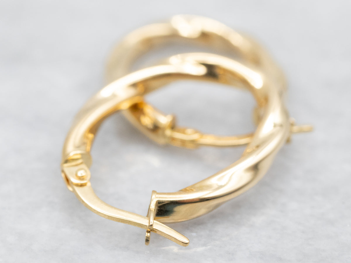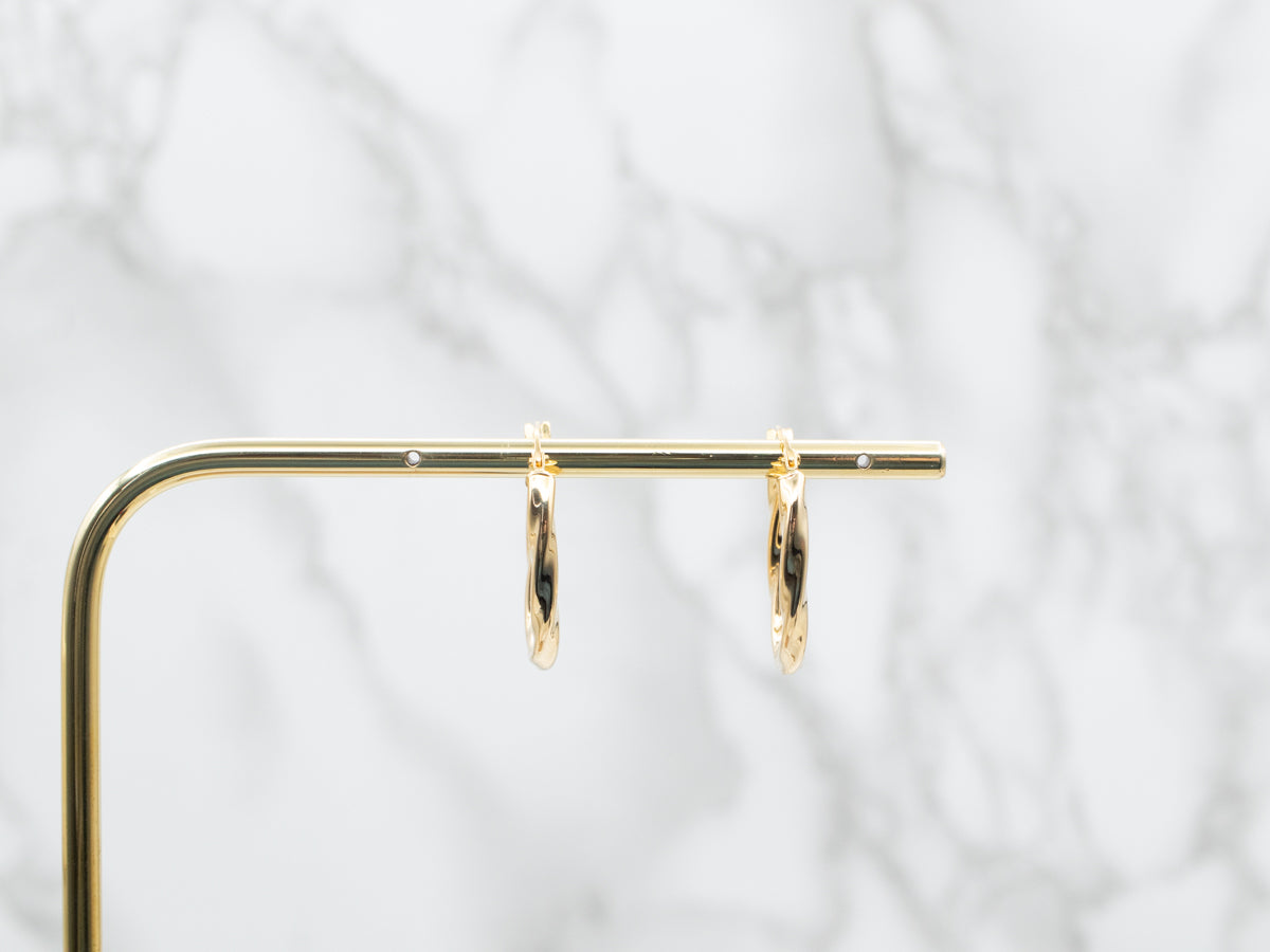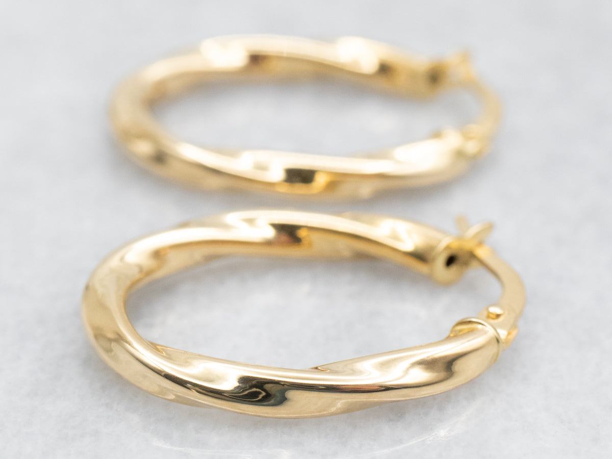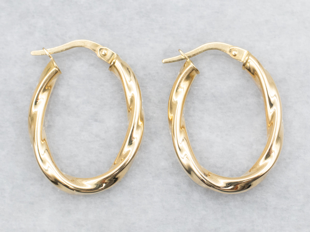 These oval-shaped twist hoops fantastically catch the light! These earrings are lightweight and easy to wear. Dress them up or down!