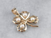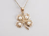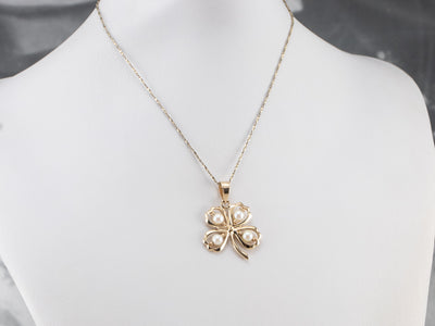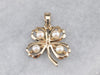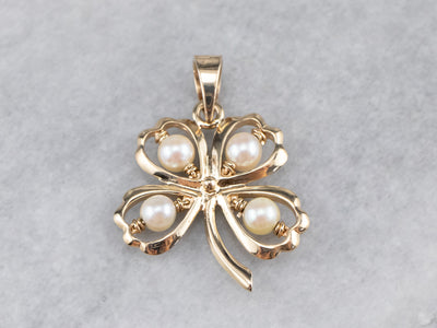 The four-leaf clover is an iconic symbol of good luck, and this version is beautifully crafted in 14 karat yellow gold. Shimmering pearls form a lovely focal point and accents for this simple polished design.