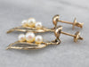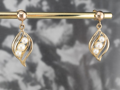These pearl drop earrings have such a gracefulness to them! Petal-like shapes of 14 karat gold curve elegantly from polished button studs. Pearl accents sit like dew drops and enhance the sophistication of these stylish earrings, while screw post findings keep them secure and comfortable when worn.