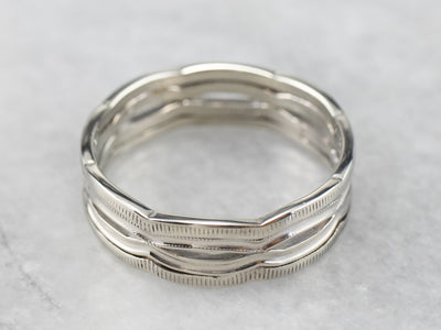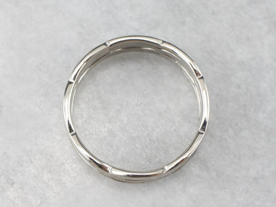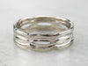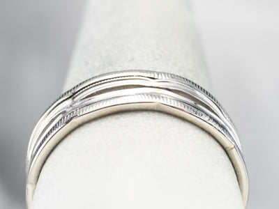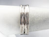 This vintage scalloped band is wide on the finger, a bold statement piece, and perfect to wear on its own, stacked with other band or next to a narrow engagement ring. The centerpiece is pierced in style, making it comfortable on the finger despite its width!