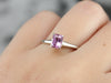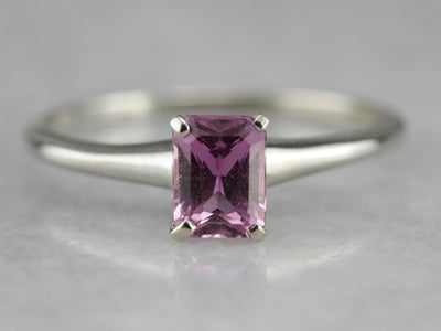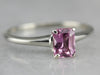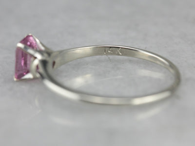 The focal point of this ring is absolutely the bright, rich, glowing pink sapphire we've set at the center! The simple engagement mounting is the perfect frame for this hot stone and will set nicely next to a variety of wedding band styles. The stone is from Sri Lanka, also called Old Ceylon. Sri Lanka is the source of the finest sapphire in the world, and this stone is no exception.