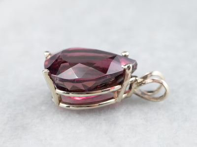 This tourmaline is an incredible fuchsia shade, perfectly accented by the gleaming gold setting. Cut into a precise teardrop, the intense color shines through the open back. Sleek and sophisticated, this gorgeous piece will transition well from day to evening!