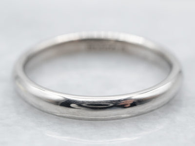 Simple and subtle, this platinum band features a high dome on top and a beautiful, soft polish. The profile and finish are completely un-decorated giving this piece a nice profile for a man or a woman. This band has a perfect polish and is ready to wear!