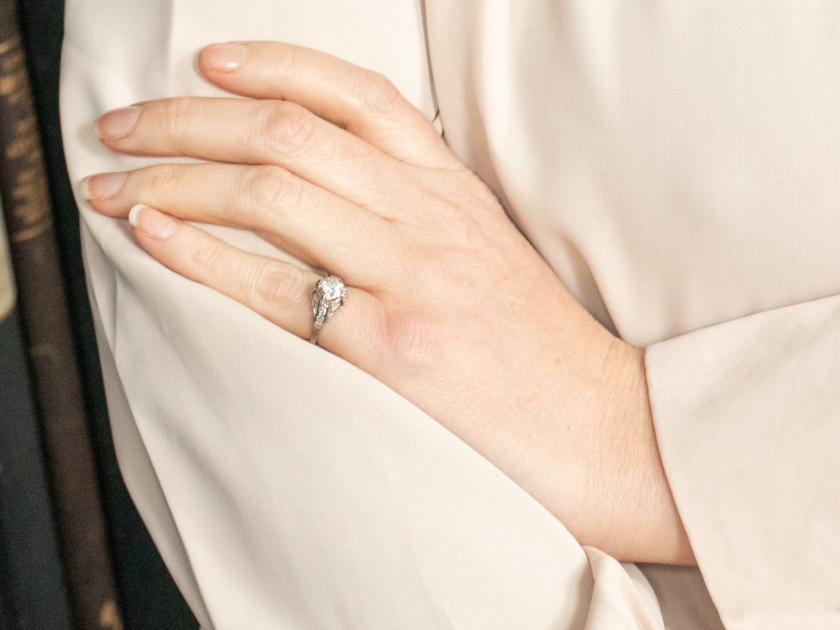 Art Deco Platinum European Cut Diamond Engagement Ring