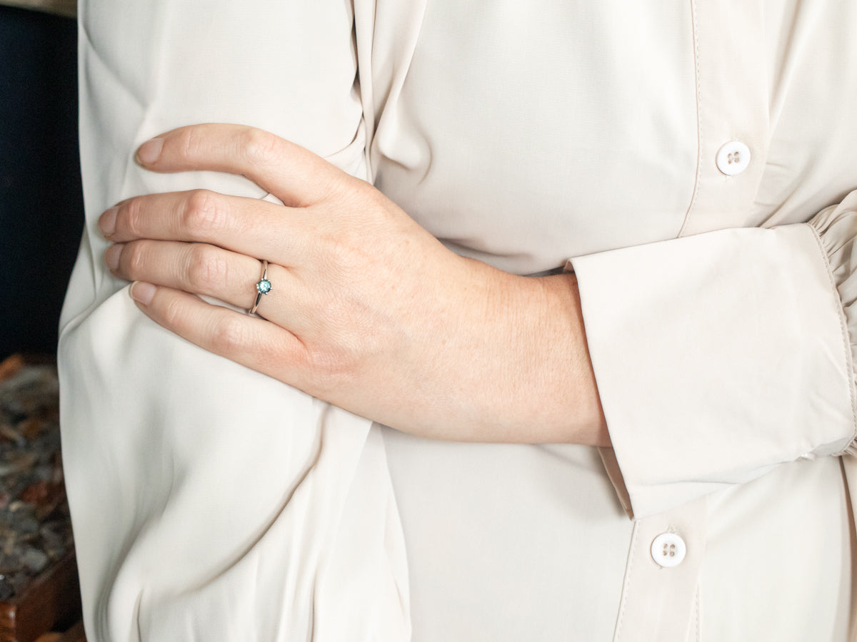 This exquisite ring is the perfect addition to any jewelry collection. Crafted from the finest platinum and set with a beautiful green sapphire, this solitaire-style ring makes a timeless statement. Dazzle in style and beauty with this stunning ring.