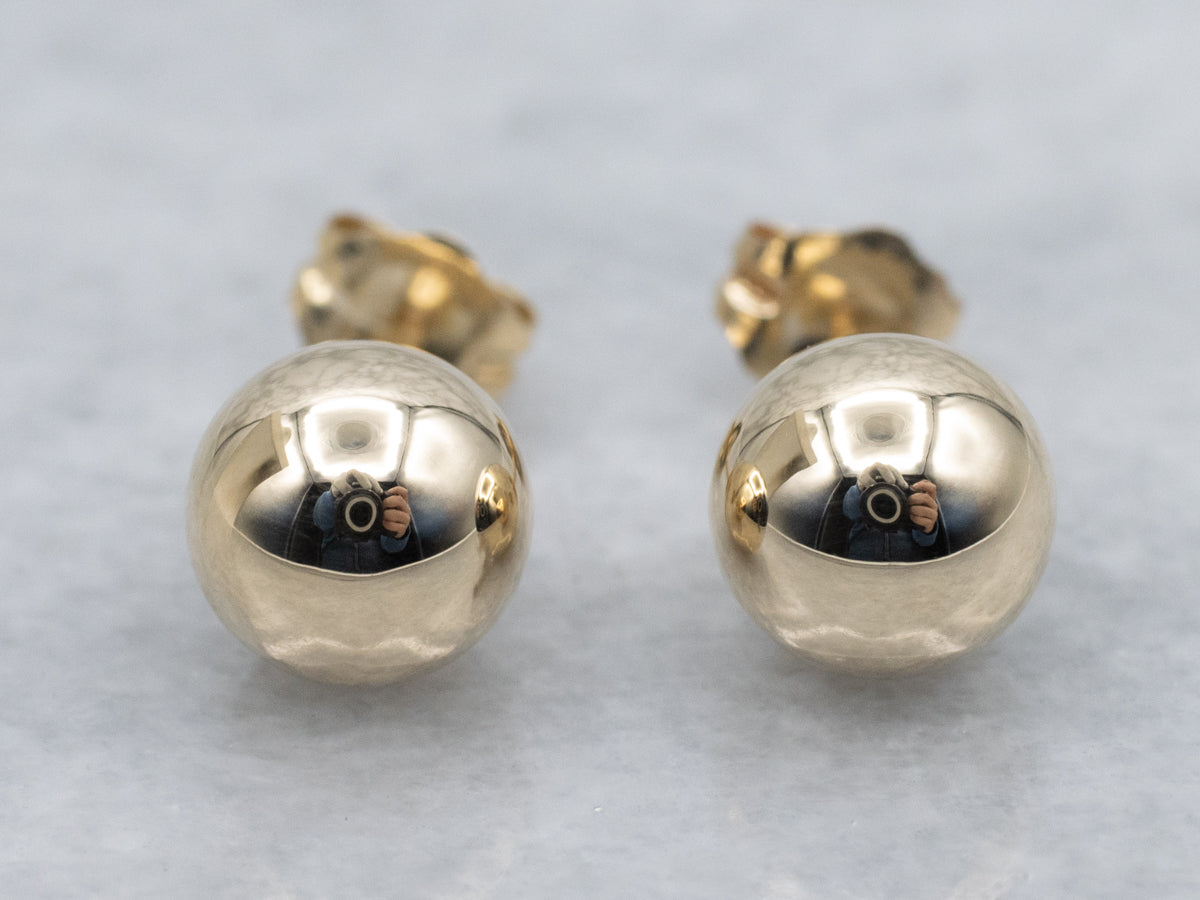 Elevate your everyday elegance with these refined yellow gold ball studs. Featuring a lustrous, polished finish and timeless spherical design, these earrings offer understated sophistication for any occasion. The secure stud setting ensures comfortable, all-day wear, while the warm glow of yellow gold complements all skin tones beautifully. A versatile essential that transitions seamlessly from office to evening.