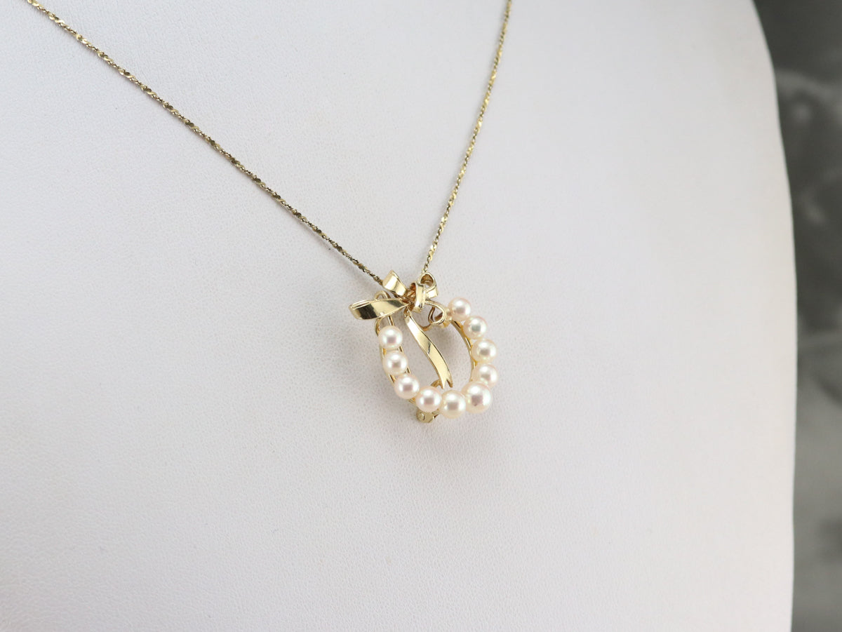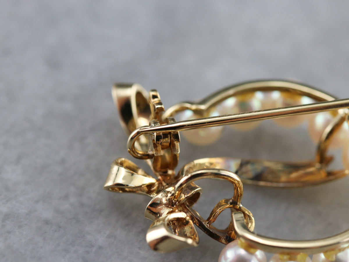 The base of the pin is 14k yellow gold, formed into a lovely linear design. Classical and sophisticated, this beautiful circle pin will look lovely worn on a lapel or sweater... or even on a wedding veil or bouquet ribbon!