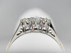 Simple, beautiful and sophisticated, this engagement ring is a classic. Dating to the Retro Era, the top features a classic head in platinum, which frames these gorgeous diamonds to perfection! The ring itself is simply decorated, with linear shoulders. Set with a high-quality but affordable diamonds, this is a classic that will look well with a variety of wedding bands!
