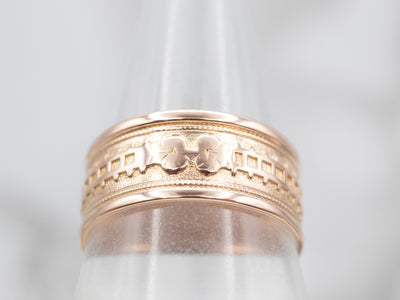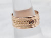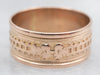 Metal: 14K Antique Rose Gold Width of Band: 8.7 mm Height off Finger: 0.9 mm Ring Size: 8.75 Marks: "14K" Stamped on the inside band