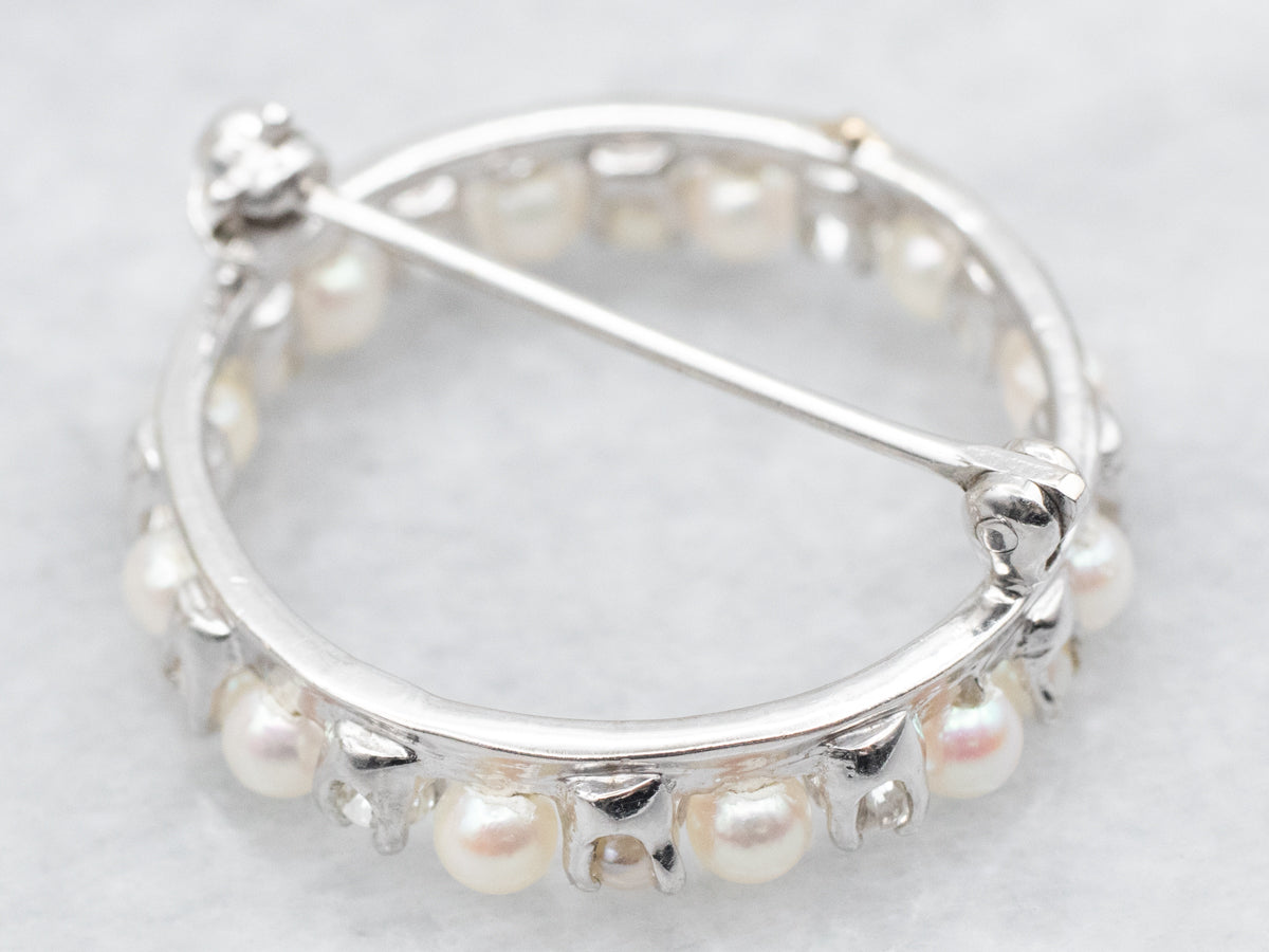 Elegant Vintage Saltwater Pearl and Diamond Circle Pin