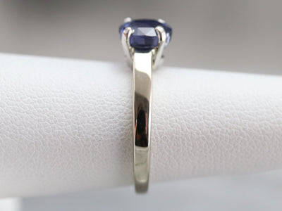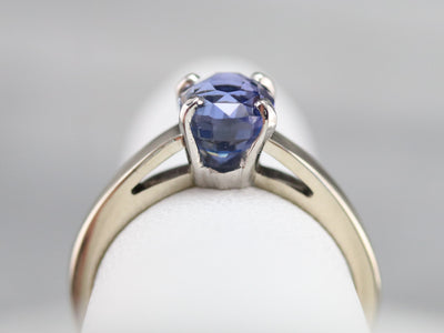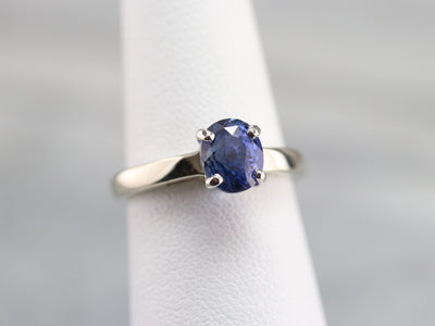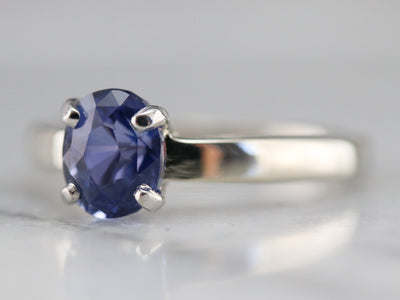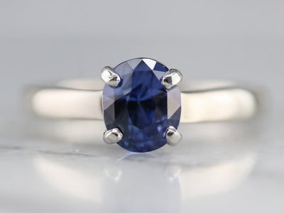 Crafted of perfectly polished, this solitaire mounting required one of our finest stones to complete it. We chose a cobalt hued sapphire that has such sparkle and intense color that it requires nothing in the way of accent to make it luxurious.