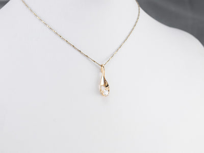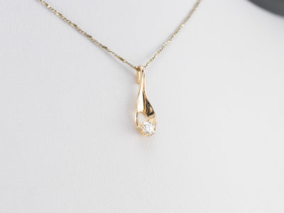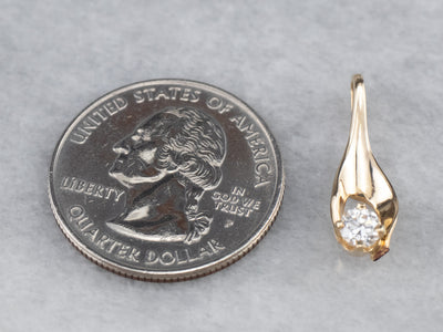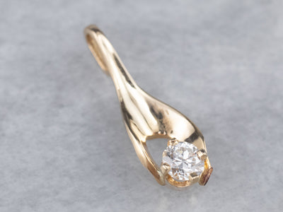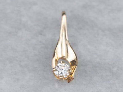 Polished bright yellow gold forms the sleek curving lines, while a glittering diamond is set with simple gold prongs, giving it the appearance of floating on air.