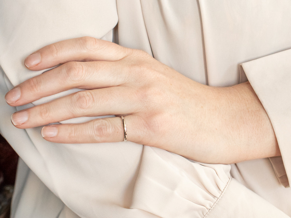 Simple and subtle, this platinum band features a low dome on top and a beautiful, soft polish. The profile and finish are completely un-decorated giving this piece a nice profile for a man or a woman. This band has a perfect polish and is ready to wear!