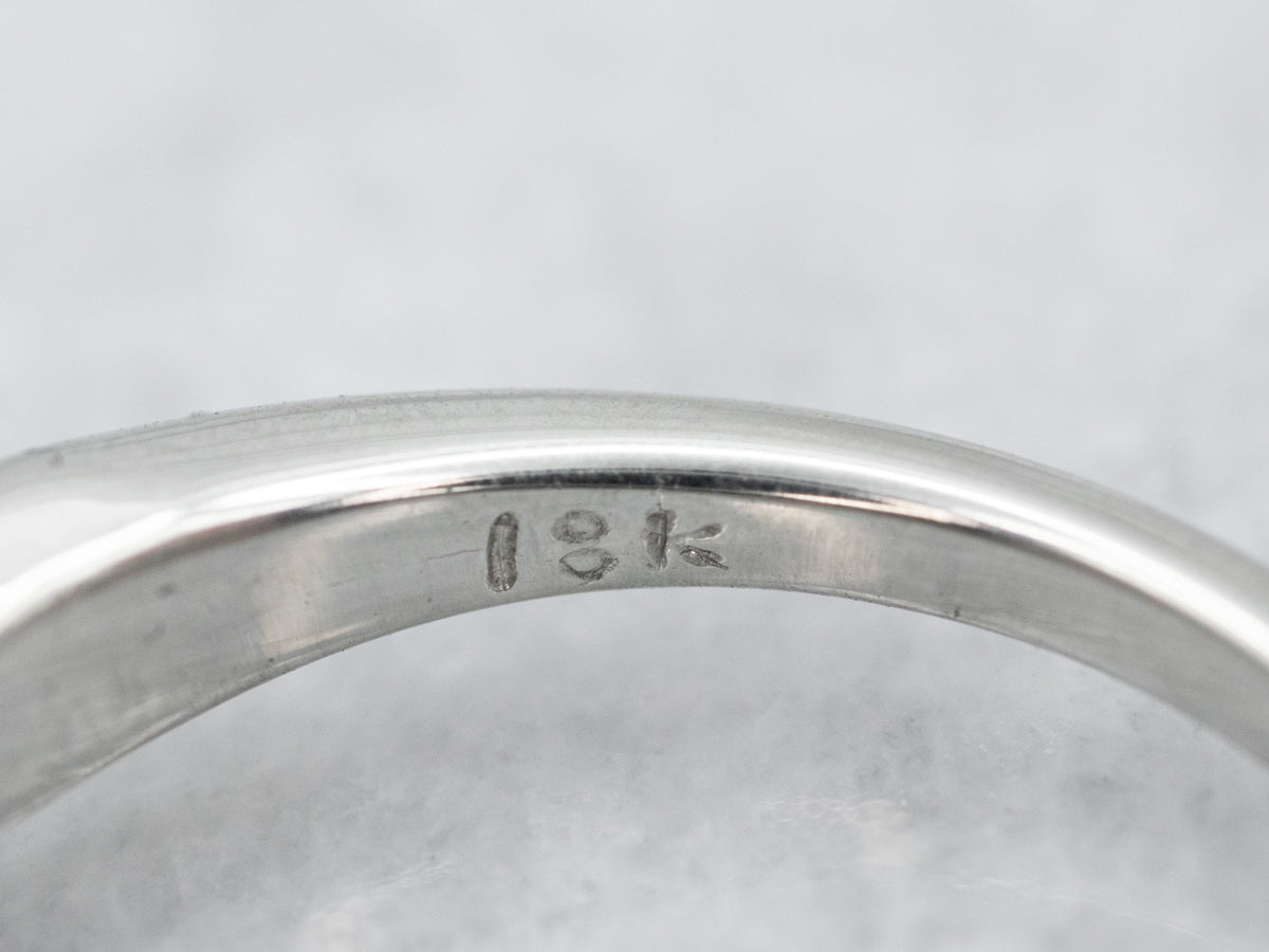 Metal: 18K White Gold Gem: Diamond .72 Carats, VVS2 in Clarity, H in Color Gem Measurements: 5.6 mm, Round Ring Size: 4.75 Marks: “18K” Stamped on the inside band
