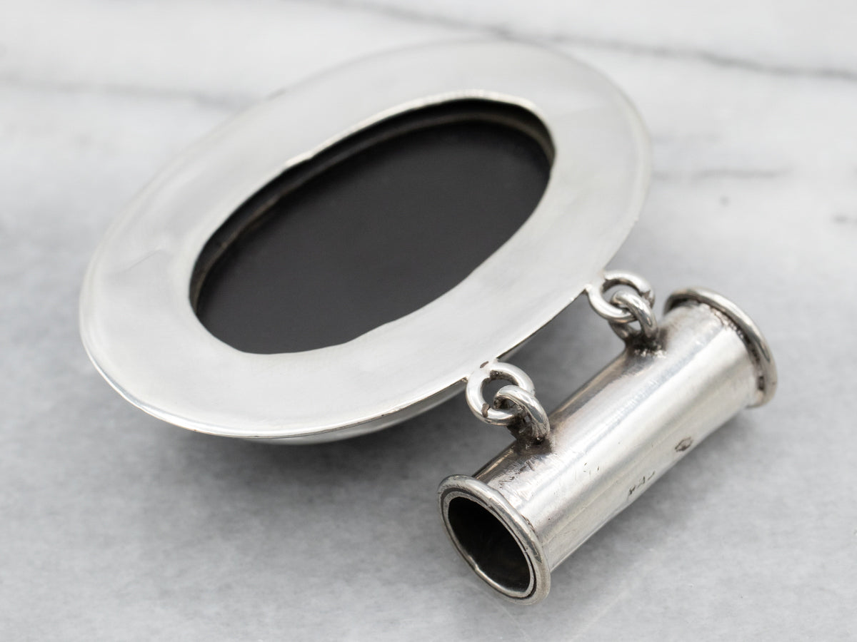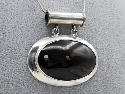 Metal: Sterling Silver Gem: Rainbow Obsidian Gem Measurements: 44.7 x 29.3 mm, Oval Measurements: 57 x 57 mm, with bail Marks: “925” Stamped on the reverse
