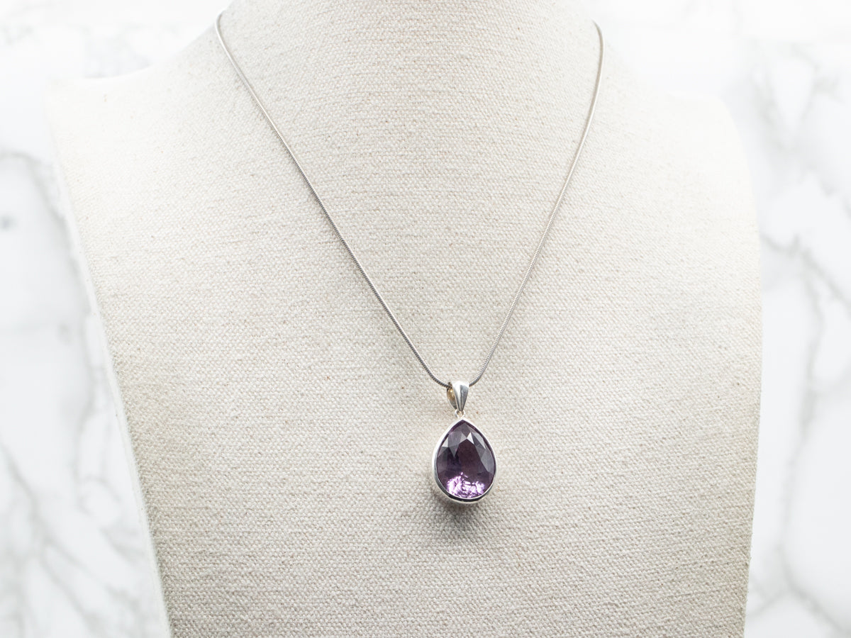 Show off your inner royalty with this elegant pendant! Featuring a classic pear cut and sparkling bezel set amethyst, this dazzling pendant will have you feeling like a queen! Get it now and you'll be sparkling in no time!