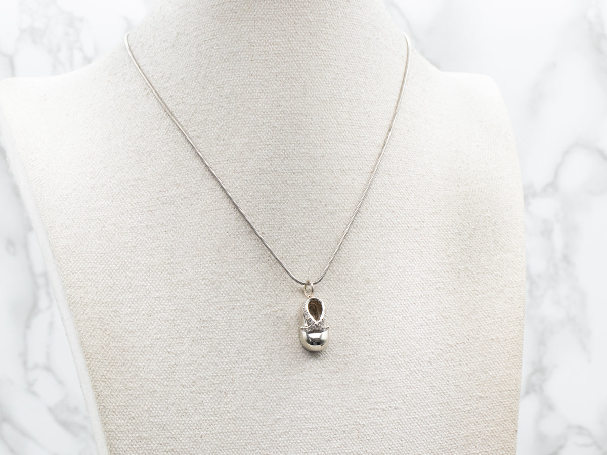 Extraordinarily detailed, this thick-walled, heavy-weight charm is in perfect condition. An inlay of diamonds and yellow gold accents give this piece a bright shine!