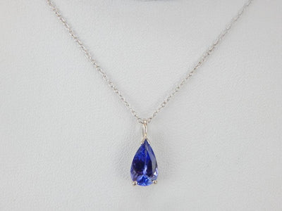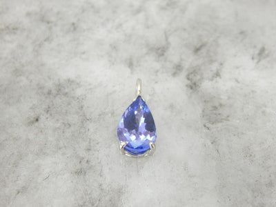 Tanzanite is a popular stone for it's rich, intense color. This pear cut gem is bright cornflower blue with hints of deep purple and even lavender flashes within it's depths! Simply set, this will be a lovely piece to wear with any outfit!