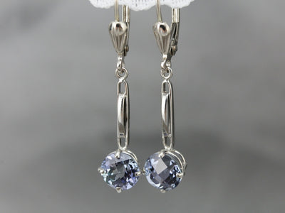 Perfect indigo circles create an elegant profile in these lovely earrings. Created from polished white gold pocket watch chain links, these lovely earrings are elegant and sensual, with just enough glitter to catch the eye.