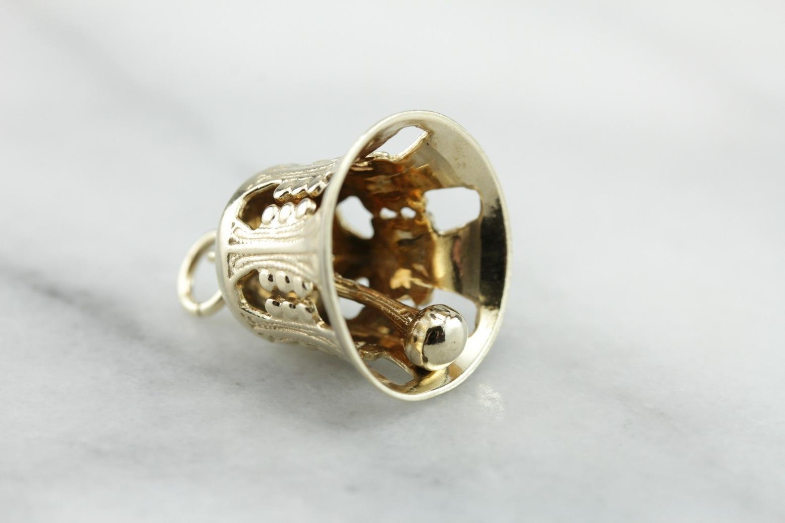 This large gold charm can be worn as a pendant as well! The scrolling filigree work is lovely and well done, and large enough to see to the inside of the pendant, and the color of a blouse or scarf worn beneath the filigree!