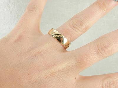 A simple but distinguished pattern of lines is the centerpiece of this polished vintage band.