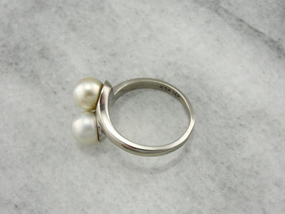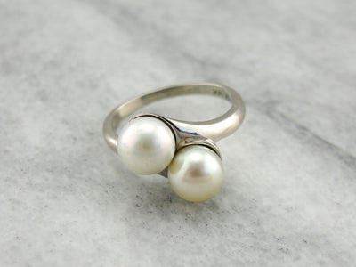 This sweet pearl ring has a classic bypass style design setting these pearls side by side. Easy to wear day or night, this vintage ring is a classic and timeless wardrobe staple!