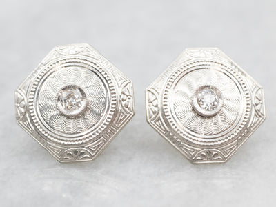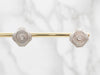 Metal: 14K White and Yellow Gold Gem: 2 Old Mine Cut Diamonds totaling .14 Carats, SI in Clarity, H in Color Gem Measurements: 3.3 mm, Round Measurements: 14 x 15 mm, Octagonal