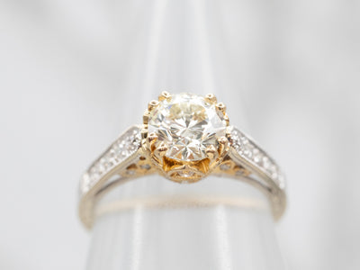 Modern Two Tone Diamond Engagement Ring with Diamond Accents