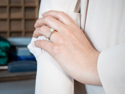 This two tone diamond engagement ring is the perfect combination of classic style and modern sophistication. Crafted from yellow and white gold, the featured diamond is complimented by diamond accents Perfect for engagements and special occasions.