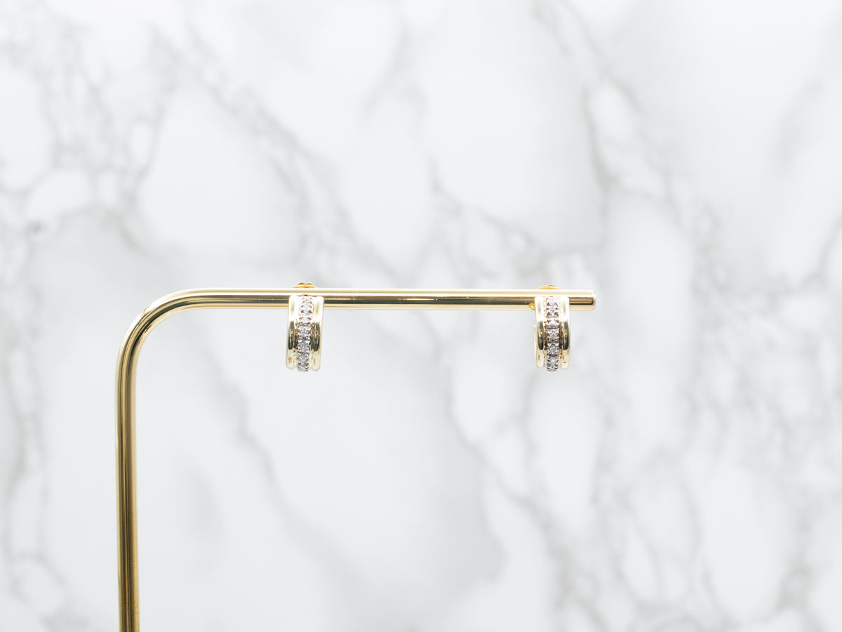 Enhance your jewelry collection with these elegant earrings. Crafted from a combination of yellow and white gold, these earrings exude sophistication and style. The sparkling diamonds add a touch of glamor, making them the perfect accessory for any occasion. Elevate your look with these stunning earrings!