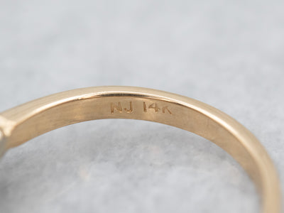 Metal: 14K Yellow and White Gold Gem: Diamond .65 Carats, SI1 in Clarity, G in Color Gem Measurements: 5.5 mm, Round Ring Size: 5.50 Marks: “NJ14K” Stamped on the inside band