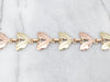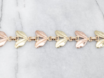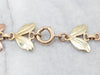 Crafted with alternating links of rose gold and yellow gold, this necklace features a delicate and stylish maple leaf seed pod motif. Perfect for special occasions or everyday wear, this one-of-a-kind necklace is sure to make a statement.