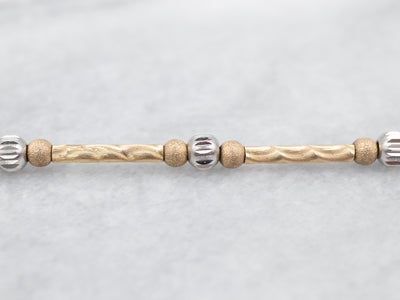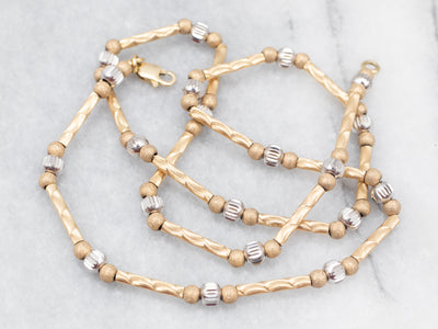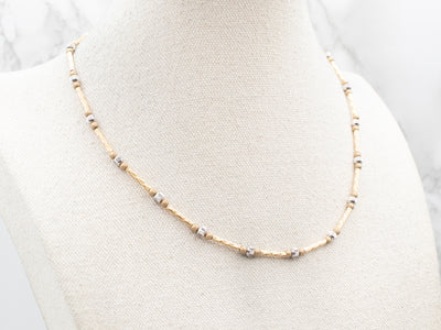 For a unique, eye-catching look, reach for this two-tone necklace. It features yellow gold tubes along with yellow and white gold beads, combining textures for a unique look. Its quality construction ensures your piece will last.