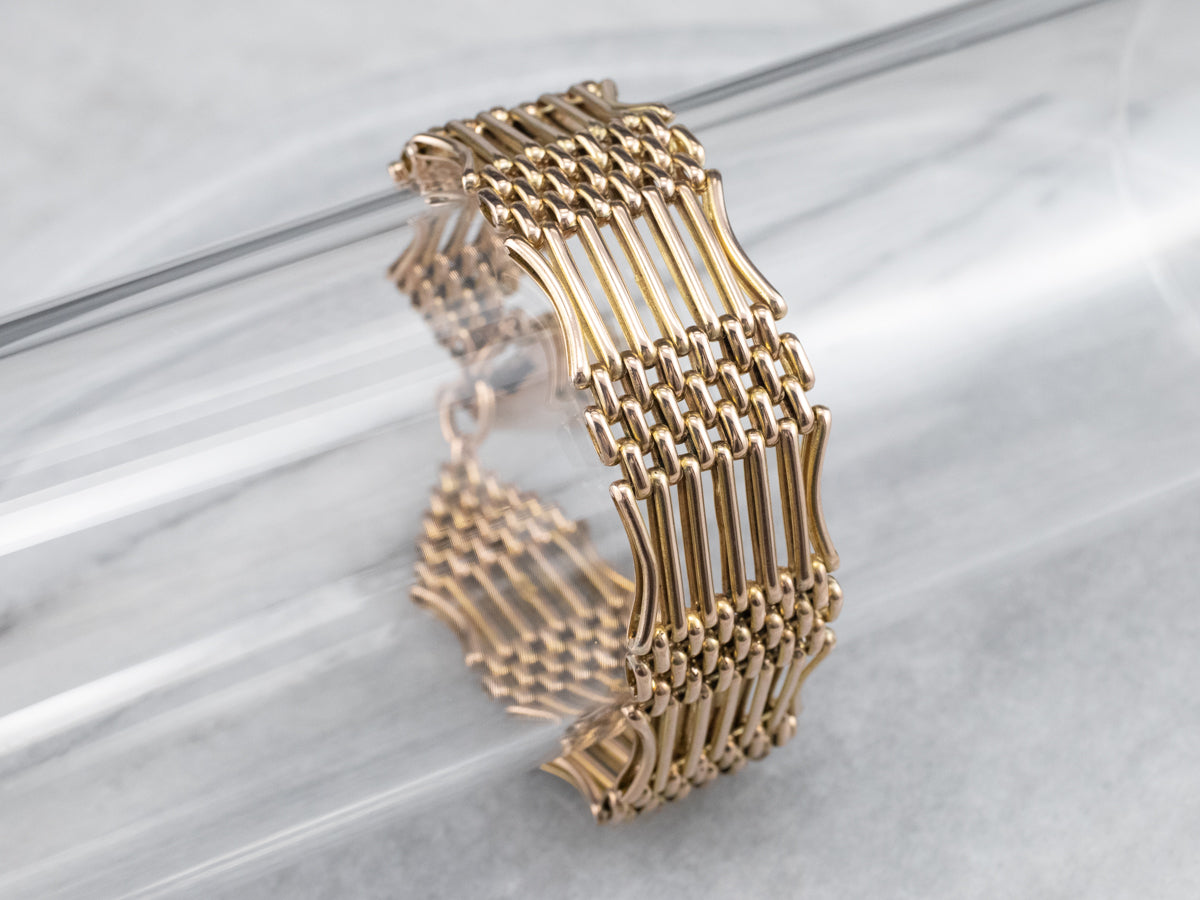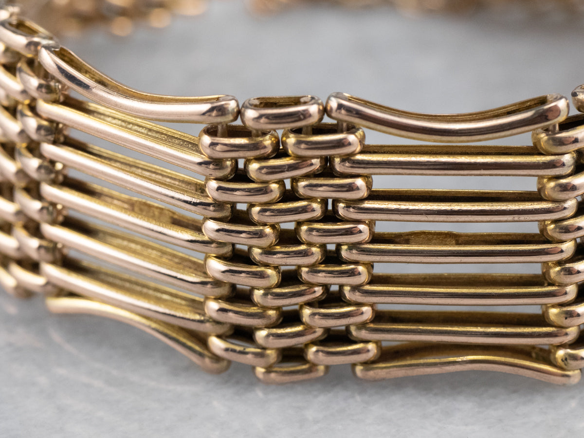 Popular in the Victorian Era, this style of bracelet is called a gate link, due to its resemblance to the gates and fences of horses' paddocks. The workmanship is excellent, with hinged sections providing fluidity and movement, and the heart-shaped padlock clasp adds a little extra sweetness to this gorgeous piece!