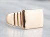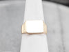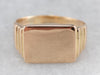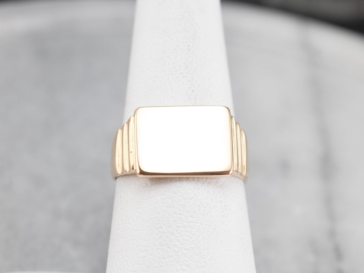 Sleek and traditional, this low set signet ring is suitable for a man or a woman. Easy to wear, this signet ring dates to the Retro era, and is crafted of 18 karat yellow gold with a perfect polish.