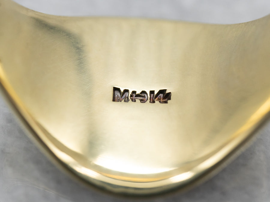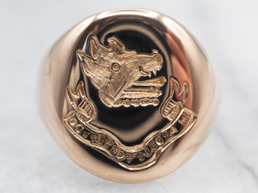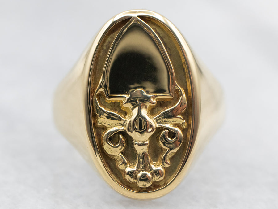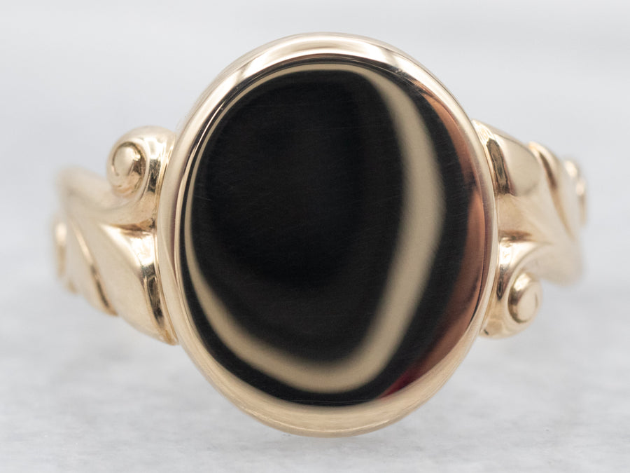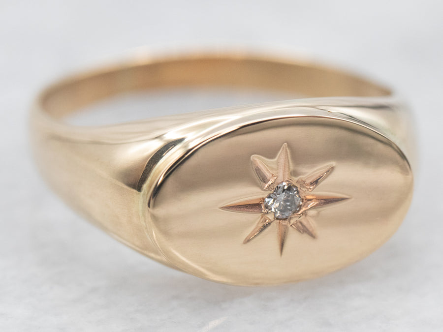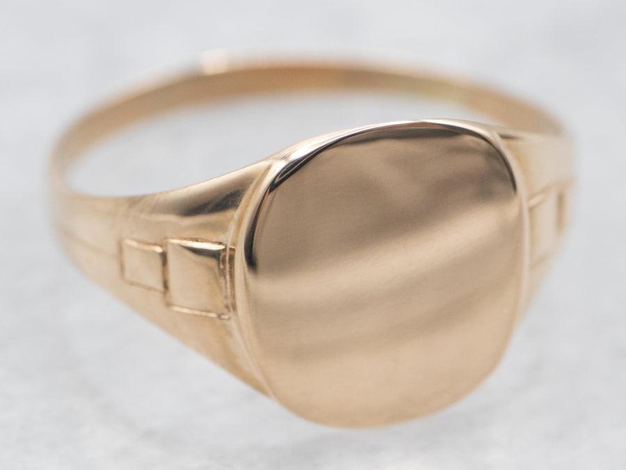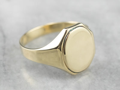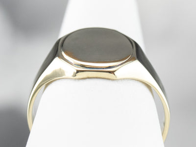 Classic, traditional, and very stately, this vintage signet ring features an oval top in the center of an octagon, which creates a wonderful visual effect. This ring could be an amazing piece for either a man or a woman, and is sure to be a conversation starter!