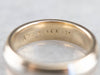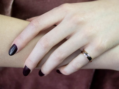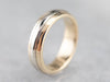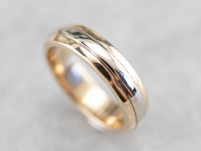 Classic and sophisticated, this piece is timeless! Simple polished edge and two-tone colored gold allow for a little bit of distinction in this simplest unisex piece.