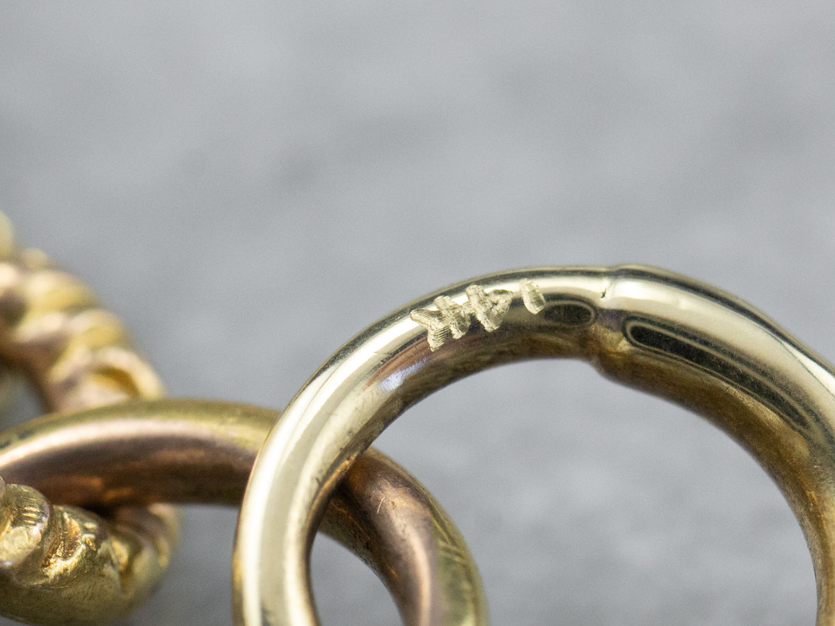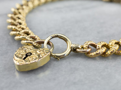 This heart bracelet is a fabulous example of the Victorian era! Fabricated in warm yellow gold, this bracelet is chased along with every other oval link, each link forming a tiny work of art.