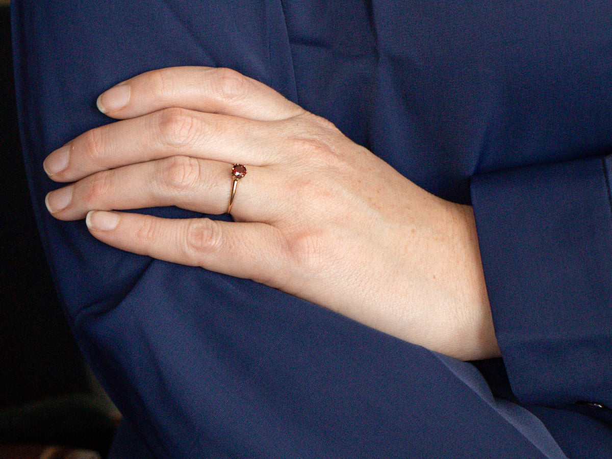This warm antique rose gold band perfectly complements the deep, blood-red garnet stone to create a piece that exudes elegance and sophistication. Perfect for a sweetheart or birthstone piece, this solitaire is ready to wear or gift.