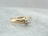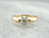 This ring is a Belcher style mounting, named after the founder of the style. The center diamond is held in a claw-like mounting that rises out of the band, and creates circular spaces underneath. This mounting is unique because it has small diamond set down into the circular spaces, which really adds a whole extra dimension and sparkle!