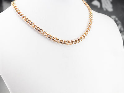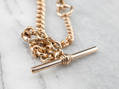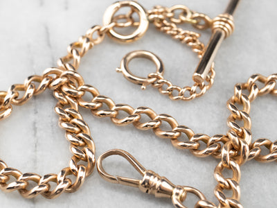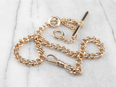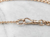 This classic chain is a hefty, Victorian-era piece crafted out of warm rose gold! The craftsmanship is superb, bold, and perfectly polished. As a pocket watch chain, this would securely handle a larger piece.