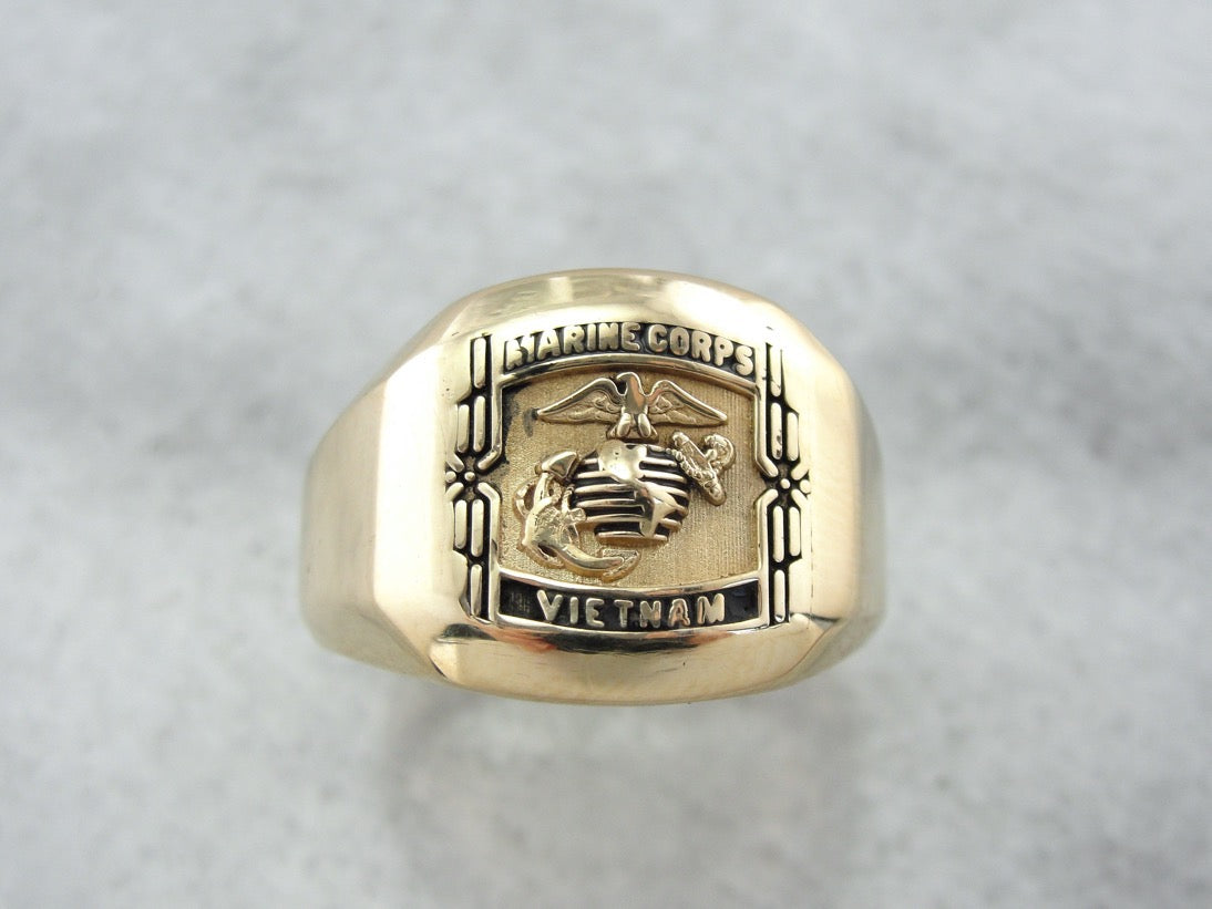 Vietnam, Marine Corps Signet Ring, Heavy Gold Military Signet Ring