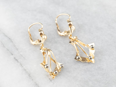 Substantial and yet light in the ear, these vintage earrings feature polished gold wire forms creating stylized floral drops. Easy to transition from office to date night, these vintage drops are ready to wear or gift!