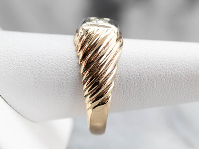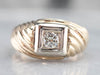 This vintage diamond men's ring would make a great engagement ring! The diamond is full of sparkle and is elegantly set into structured white gold. A grooved design gives this ring excellent movement when the light hits it and makes for a bold statement!