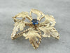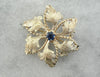 Beautifully designed, this vintage brooch features a polished finish and a design that is very natural. A classic symbol of love and luck, this pin will look lovely worn on a lapel or sweater... or even on a wedding veil or bouquet ribbon as a 'something blue'. We've set the center with a lovely blue sapphire.