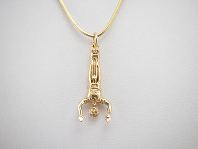 A unique memento of a death-defying experience, this vintage gold charm features a bungee-jumping man, with a wonderful expression and plenty of character!